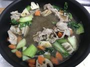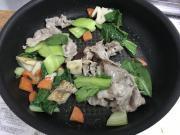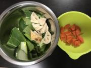 ![]() チンゲン菜は一口大のざく切りに、れんこんは乱切りに、人参はいちょう切りにしてレンジで柔らかくしておきます。
