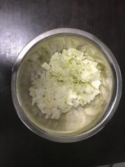 ![]() キャベツと玉ねぎは粗めのみじん切りにする