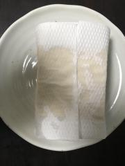 ![]() 木綿豆腐はキッチンペーパーにつつんで、500w1分を2回加熱し水分を飛ばす