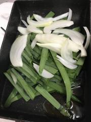 ![]() ニラと玉ねぎを大体同じ薄さ、長さに切りそろえる。熱したごま油でよく炒める