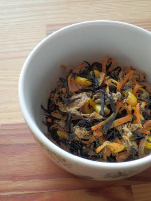 ![]() ひじきは水で戻す。 にんじんは千切りにする。