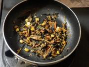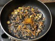 ![]() にんじんが軟らかくなり、ひじきがふっくらしたらカレー粉を加える。