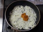 ![]() たまねぎに火が通ったら、カレー粉を加えさらに炒める。