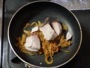 ![]() 油を熱し、玉ねぎとにんにくを火が通り色が透き通るまで炒める。