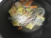 ![]() 野菜に火が通ったら春雨を入れる。