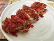 ![]() 両面を焼き、しっかり火が通ったら一口大に切る。