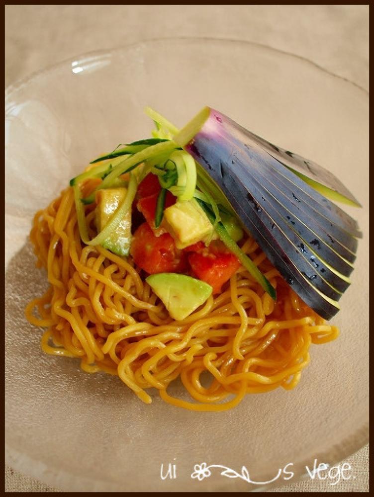 麺が冷たくなったら、用意しておいた野菜を乗せて出来上がり。