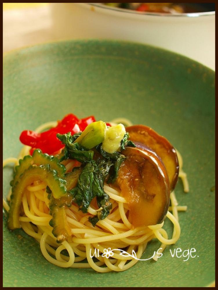 パスタを茹でて冷水で冷やし野菜と絡めて出来上がり。