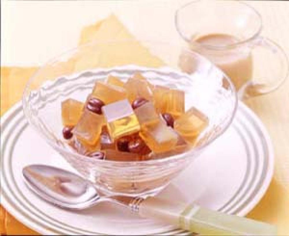(1)を流し缶に入れて、冷やし固め、サイコロ状に切る。