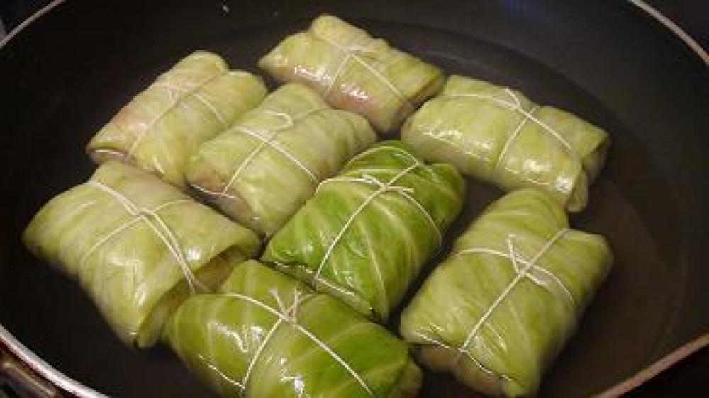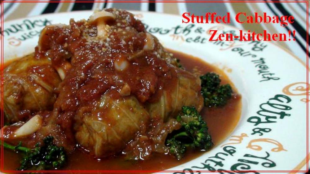 ![]() たねを8等分してキャベツで巻いてタコ糸などで縛っておく。
