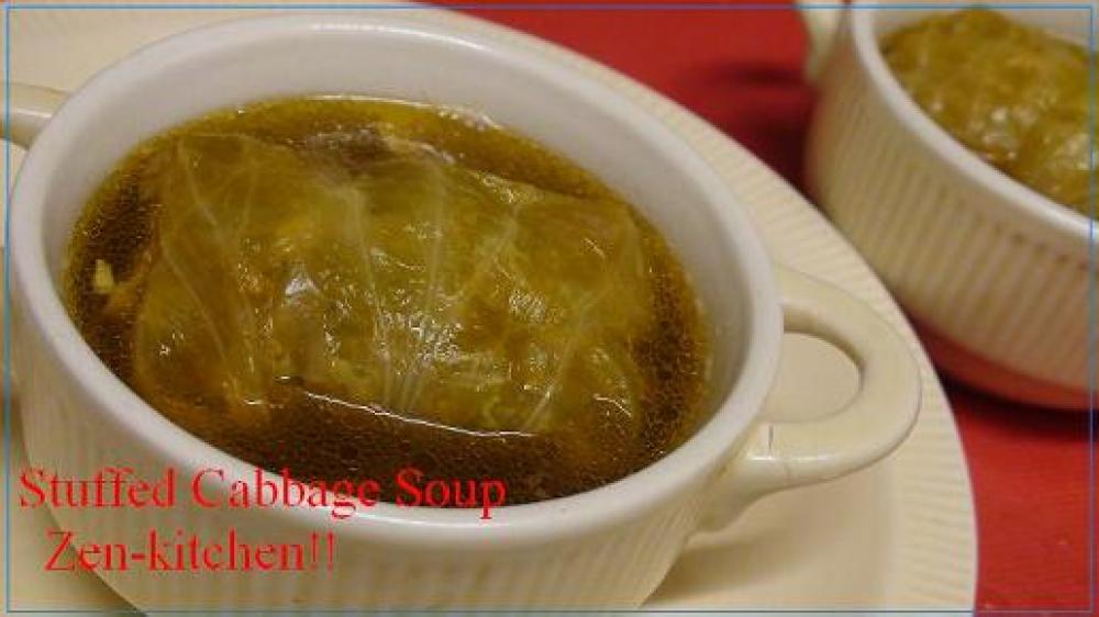 スープの半量とロールキャベツ2個は別の小鍋にとり、(コンソメスープ用調味料)を入れて弱火で15分煮込む。