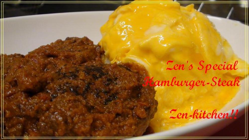 ボールに(ハンバーグ材料)を入れ、しっかり捏ねて形成し、フライパンで両面焼く。②を入れて蓋をして弱火で煮込む。
