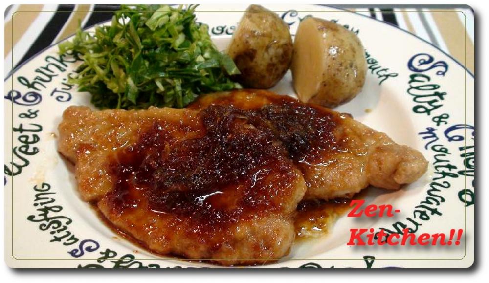 <ソース>の材料、摩り下ろし玉ねぎを弱火で煮詰めます。とろみがでてきたらバターを加えます。