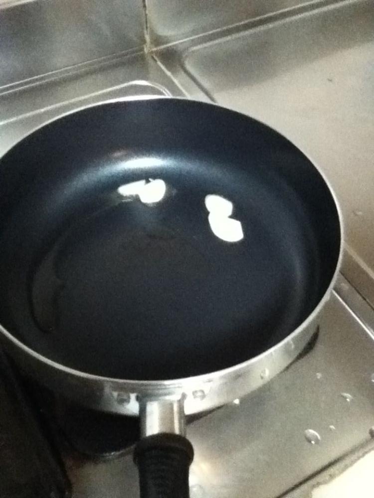 ![]() 香りが出たら豚肉を炒めて塩コショウをする。