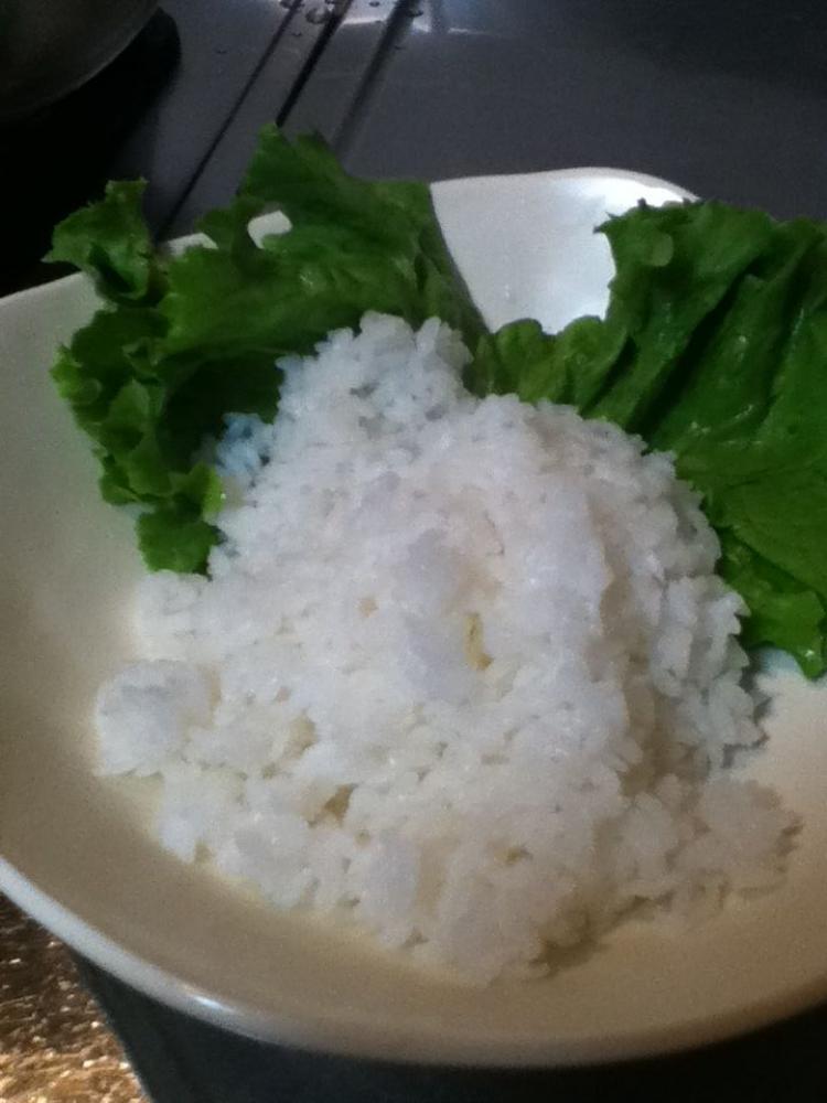 ![]() 器にマンナンヒカリを混ぜて炊いたご飯を盛る。
