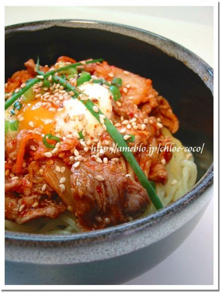 ![]() ③と共に器に盛り付け、温泉たまご&お好みの薬味を添える。最後に冷し中華タレを少しかけて。