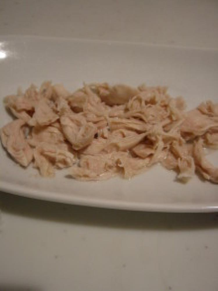 ![]() 野菜を食べやすい大きさに切り、ささみは酒(小2)を振りかけ火が通るまでレンチンする。