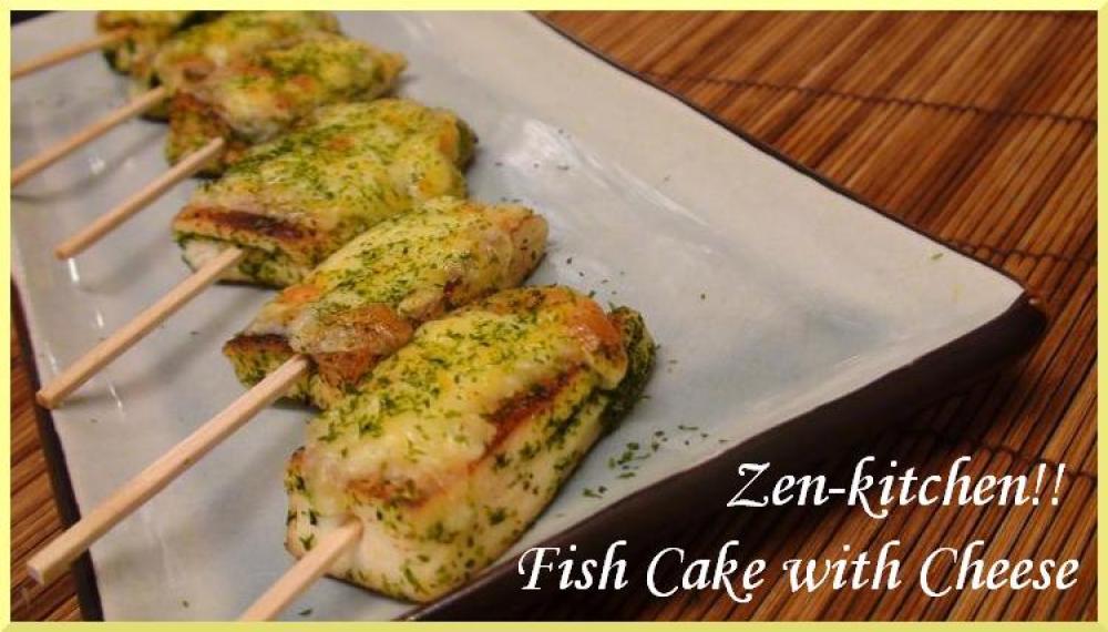 串をさして、青海苔をまぶしてチーズをのせて、グリルで焼きます。