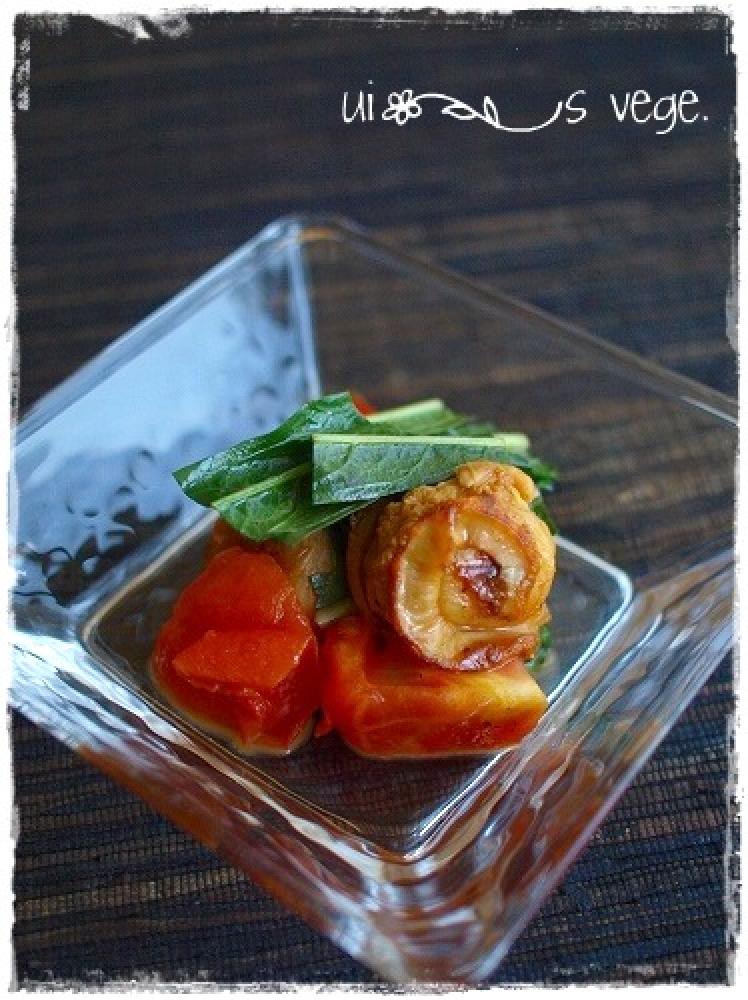トマトを小さく切り加えて塩・胡椒し醤油とレモン汁を加えて強火でサッと炒める。