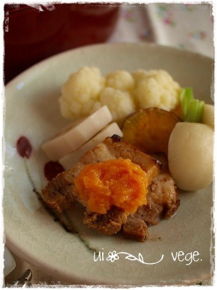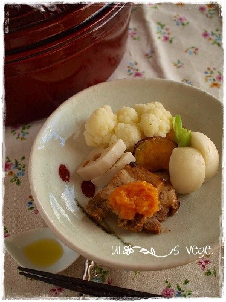 ![]() ストウブ鍋で蒸し焼きにした豚肉と蒸し野菜に添えてブラックペッパーをかけて出来上がり。
