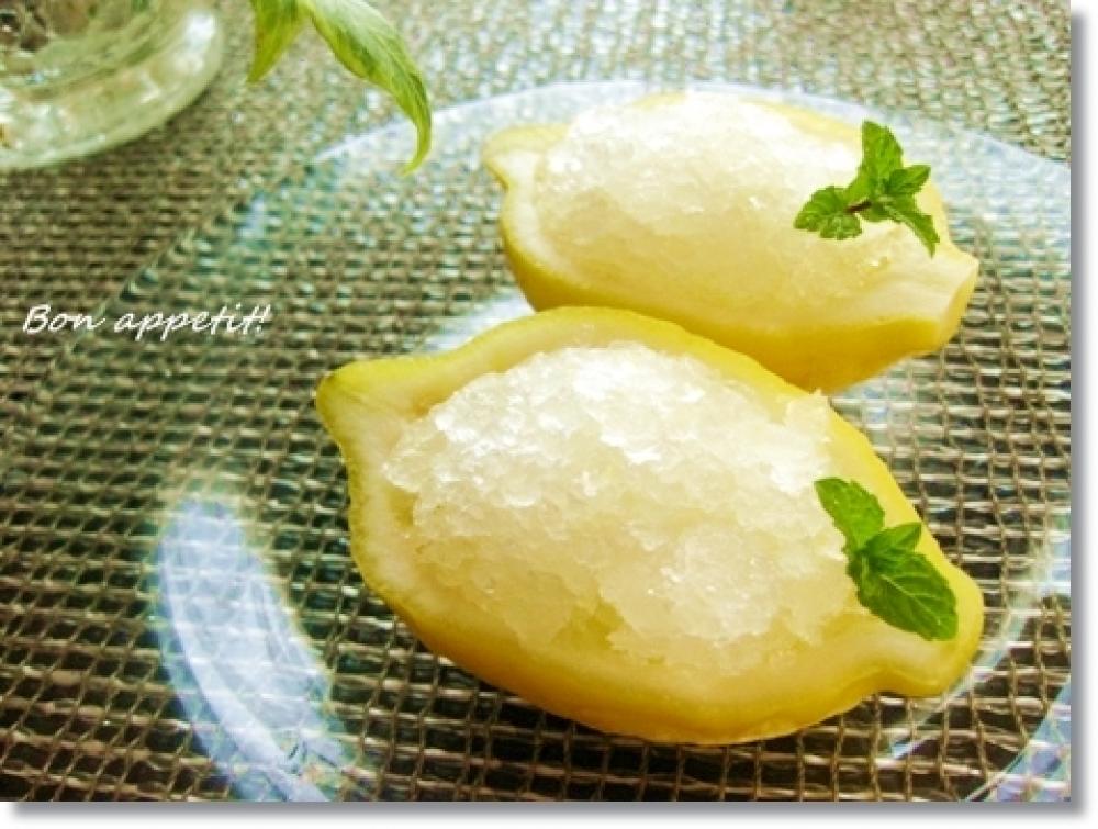 冷やしておいたレモンの器に5を盛り付け、ミントの葉を飾って出来上がり。