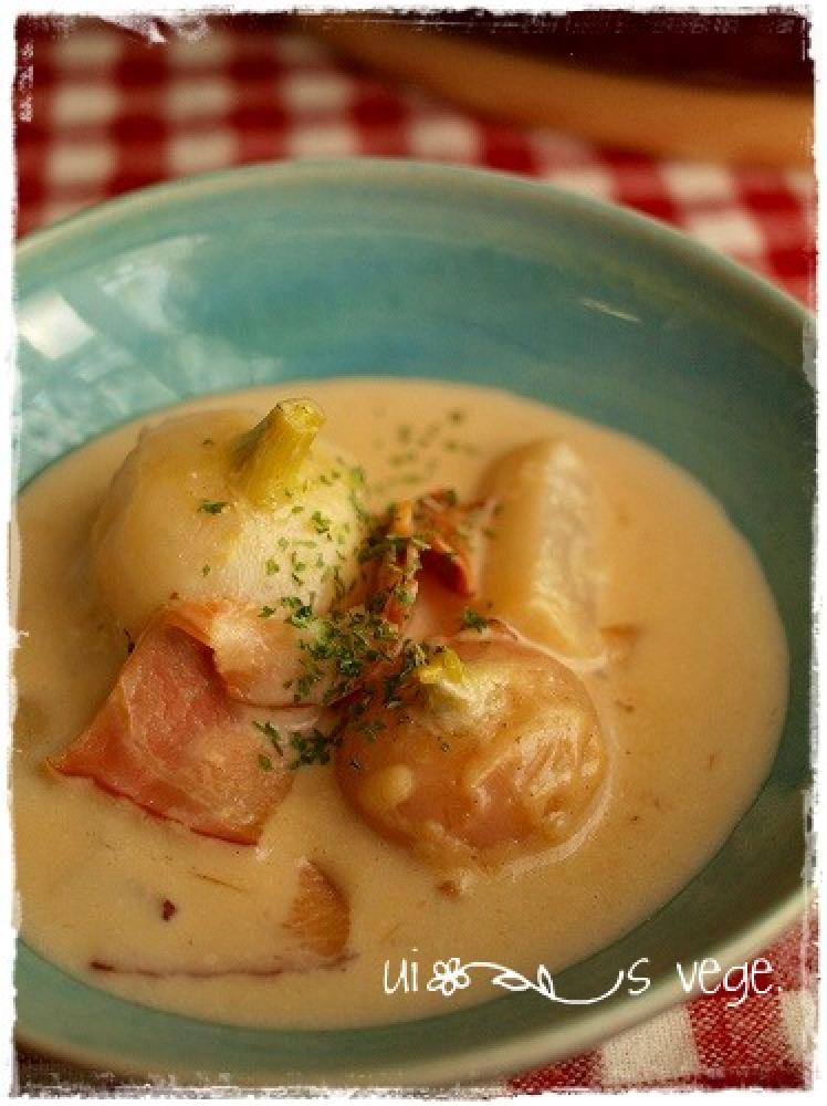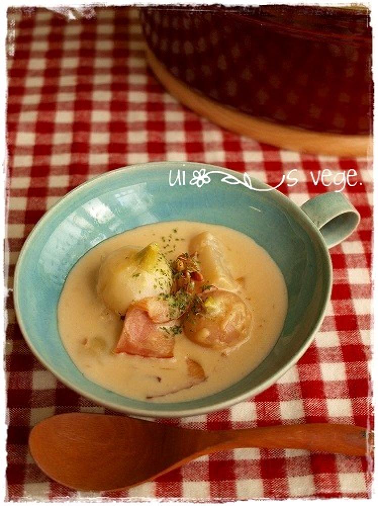 ![]() 牛乳で伸ばしスープ状になったら塩・胡椒で味を調えて出来上がり。