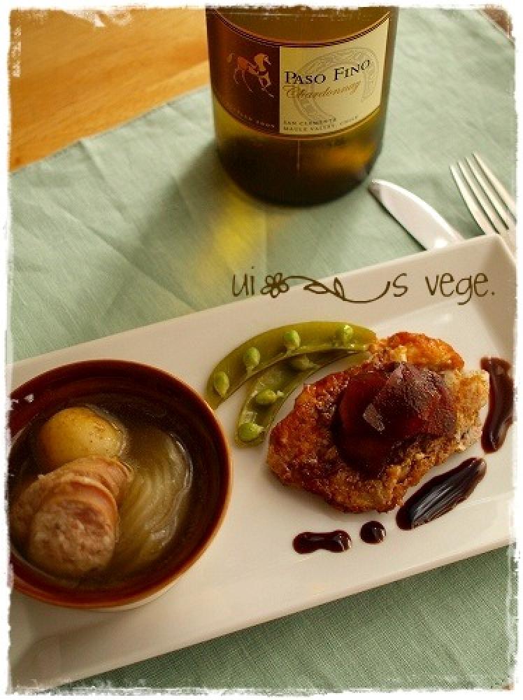 ![]() お肉の両面に軽くパプリカパウダーを振り、焼きあがったら作っておいたバルサミコソースをかけリンゴを乗せて出来上がり。