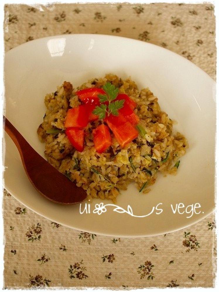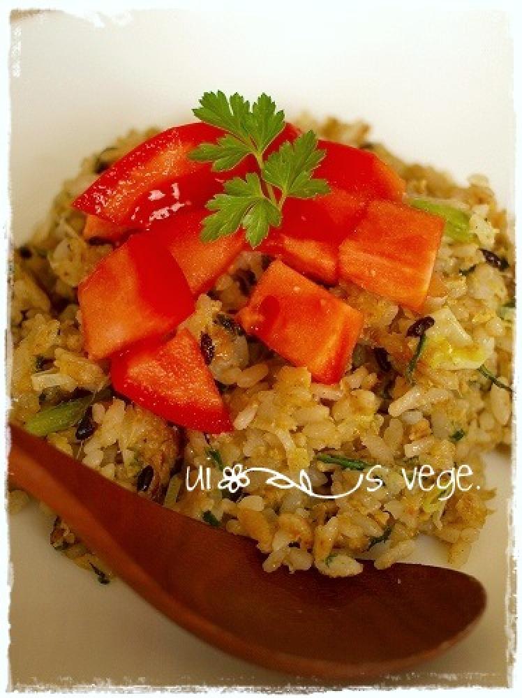 そこへ、卵を混ぜたご飯を入れてパラパラになるまで炒める。