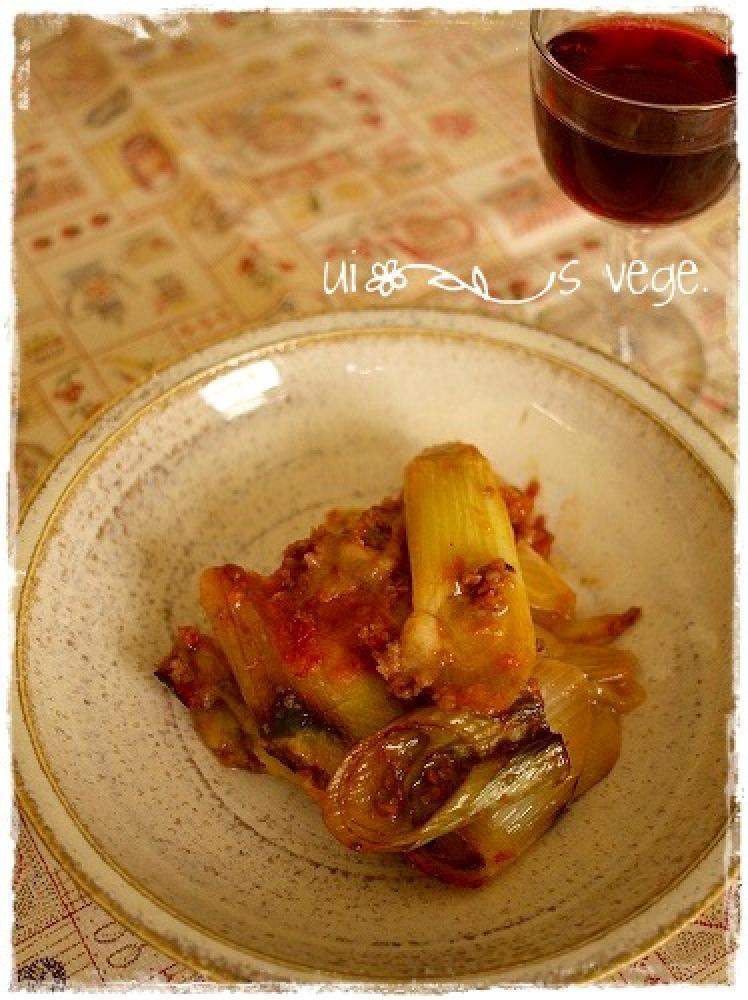 ![]() 焼いたネギにミートソースを絡めてチーズをたっぷりのせてトースターで焼くだけ♪