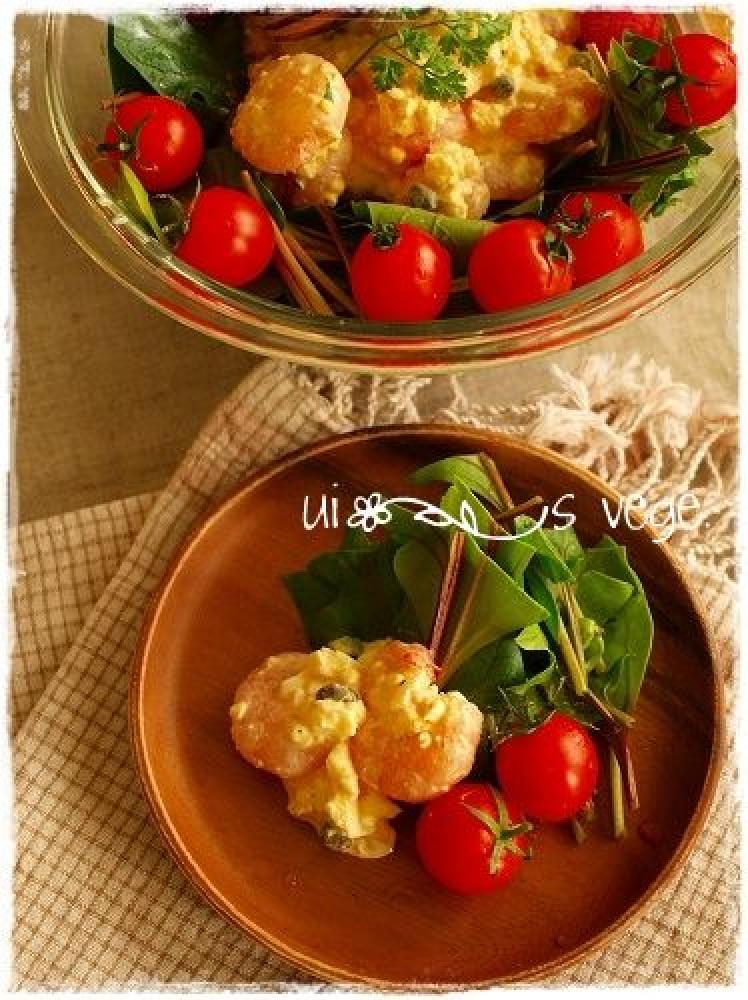 エビの水分が切れたら、先に作っておいたタルタルソースにエビを入れてよく和える。