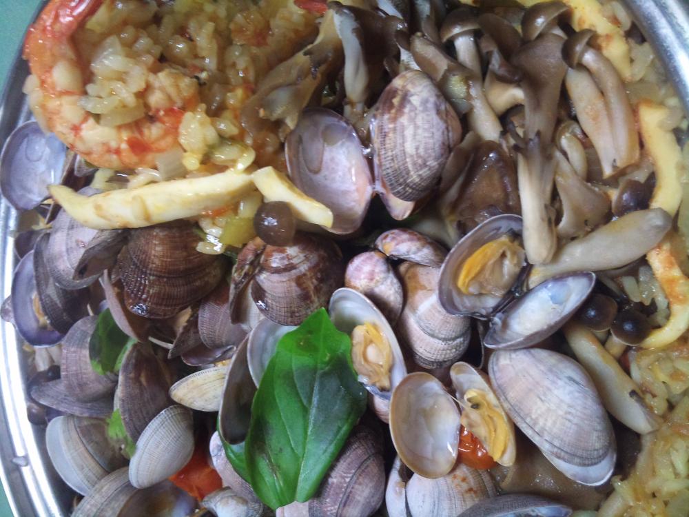 1からを取り出し、バランス良く並べる。ホタテ・イカ・殻付きのあさりをきれいに並べる。