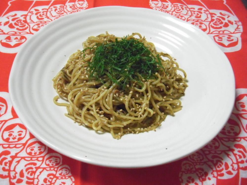 盛り付け、青シソの千切り、白いりゴマをトッピング。