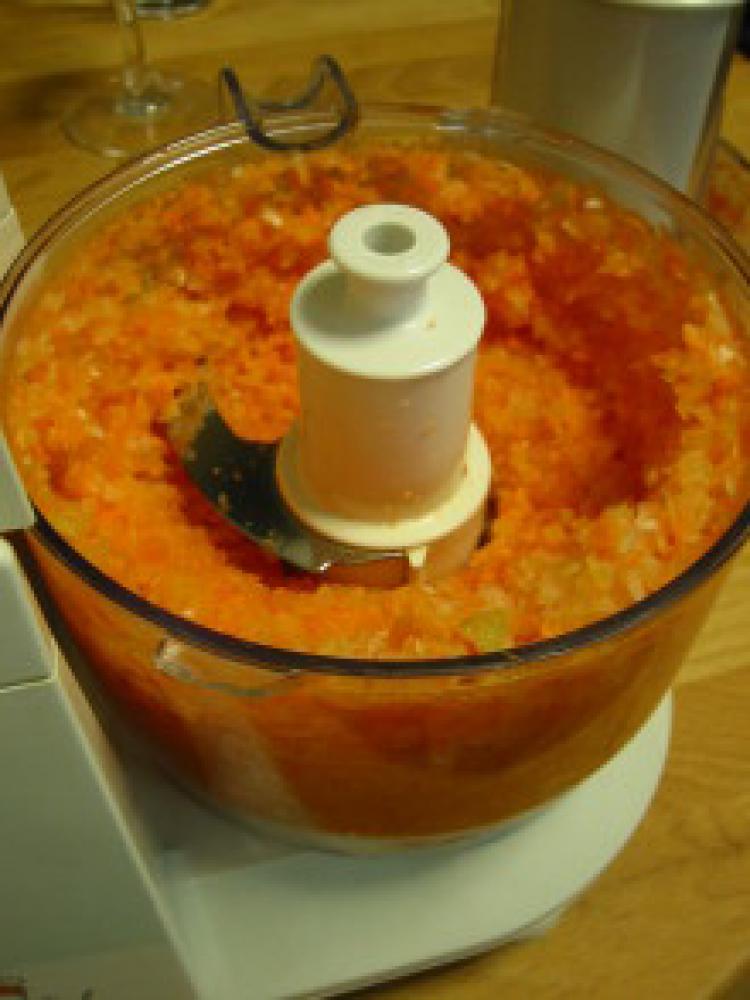 ![]() 玉ねぎ&にんじんをFPにかけます。