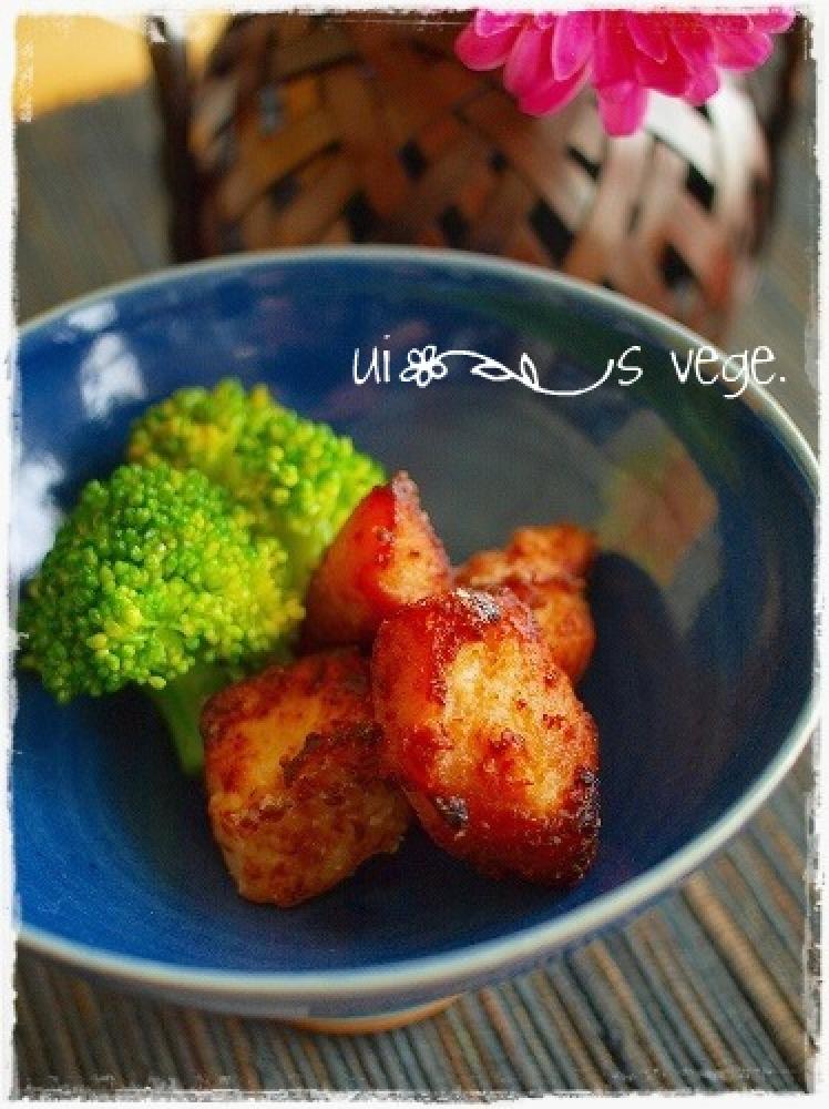 冷蔵庫で3~5日程漬け込み、一口大に切り粕をつけたまま米粉を叩き油で揚げる。