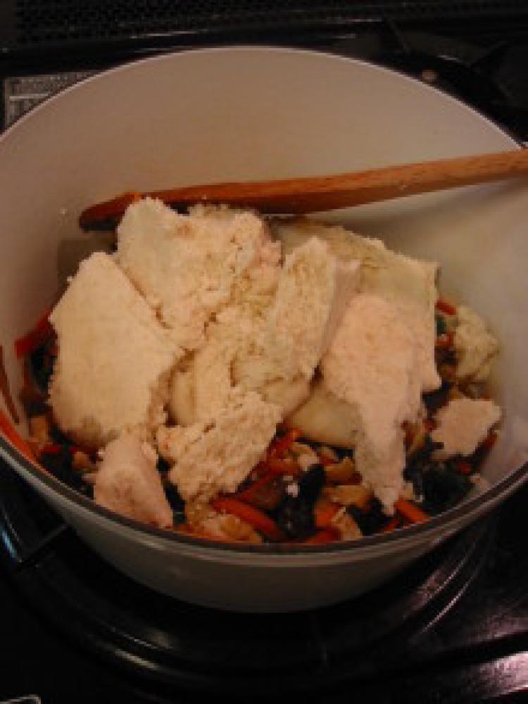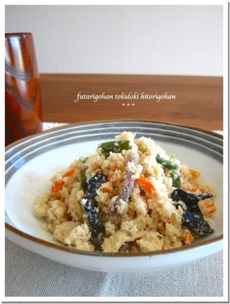 ![]() 軽く炒めて全体に油がまわったら、おから入りま~す。