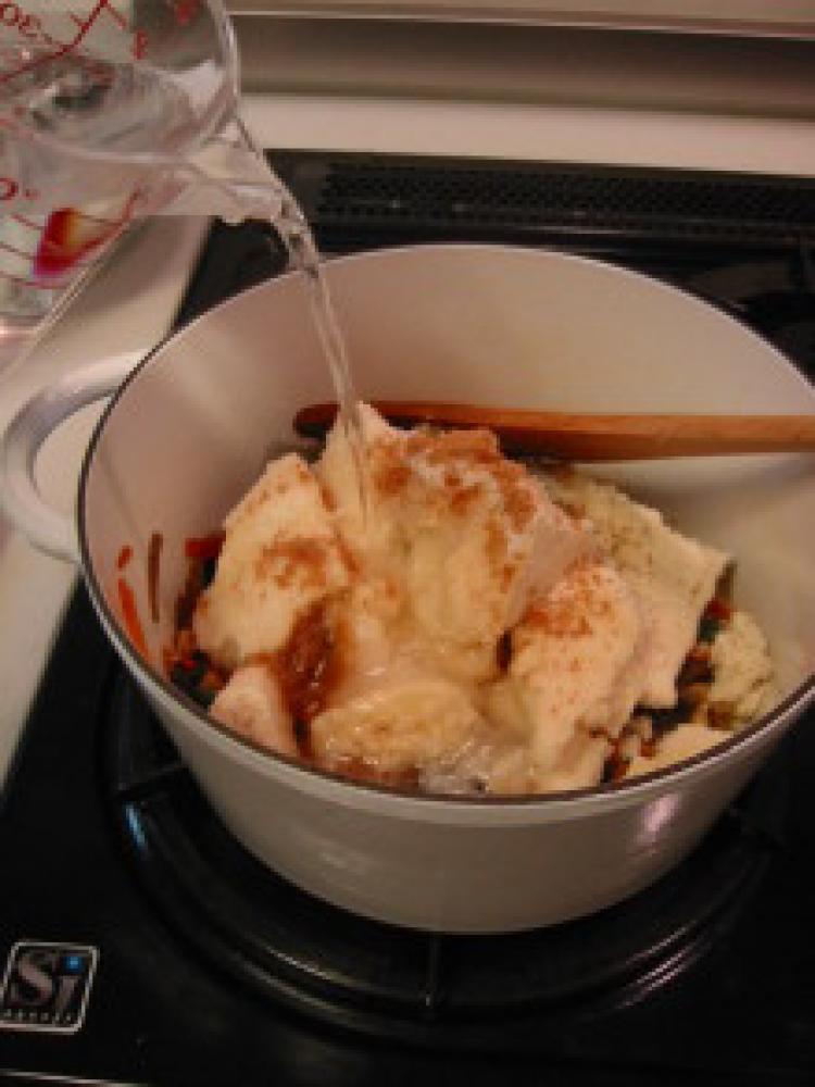 ![]() 続けて(A)の調味料を加えだしをそそぎます。