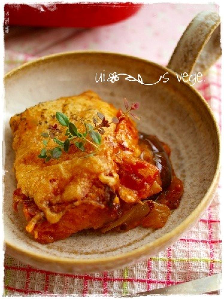 フライパンにオリーブオイルを入れ熱し、ベーコン・玉ねぎをよく炒める。ナスを加えよく炒め、ミート缶を加えて混ぜ合わす。