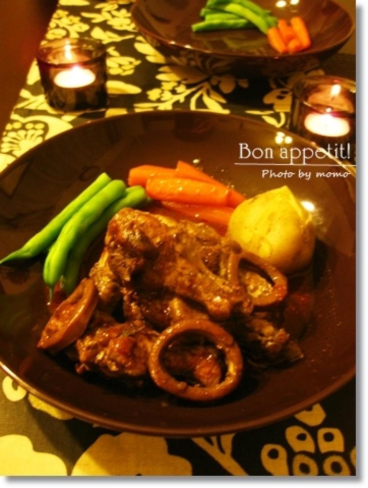 蓋を開け、肉が十分柔らかくなったらコンソメといかを入れ、さらに5分~10分ほど煮込む。