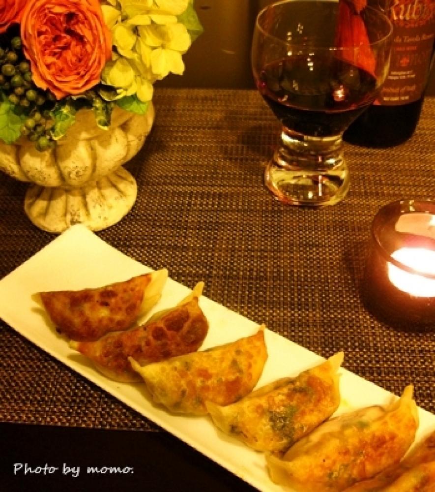 10等分したAを餃子の皮で包み、サラダ油を熱したフライパンで色よく焼き、出来上がり。
