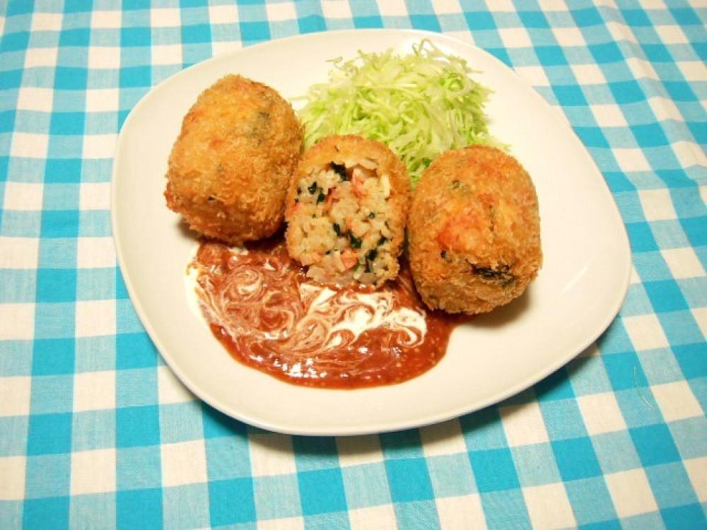 分量外の薄力粉→溶き玉子→パン粉の順に衣づけし、170℃~180℃位の油で、きつね色になるまで揚げる。