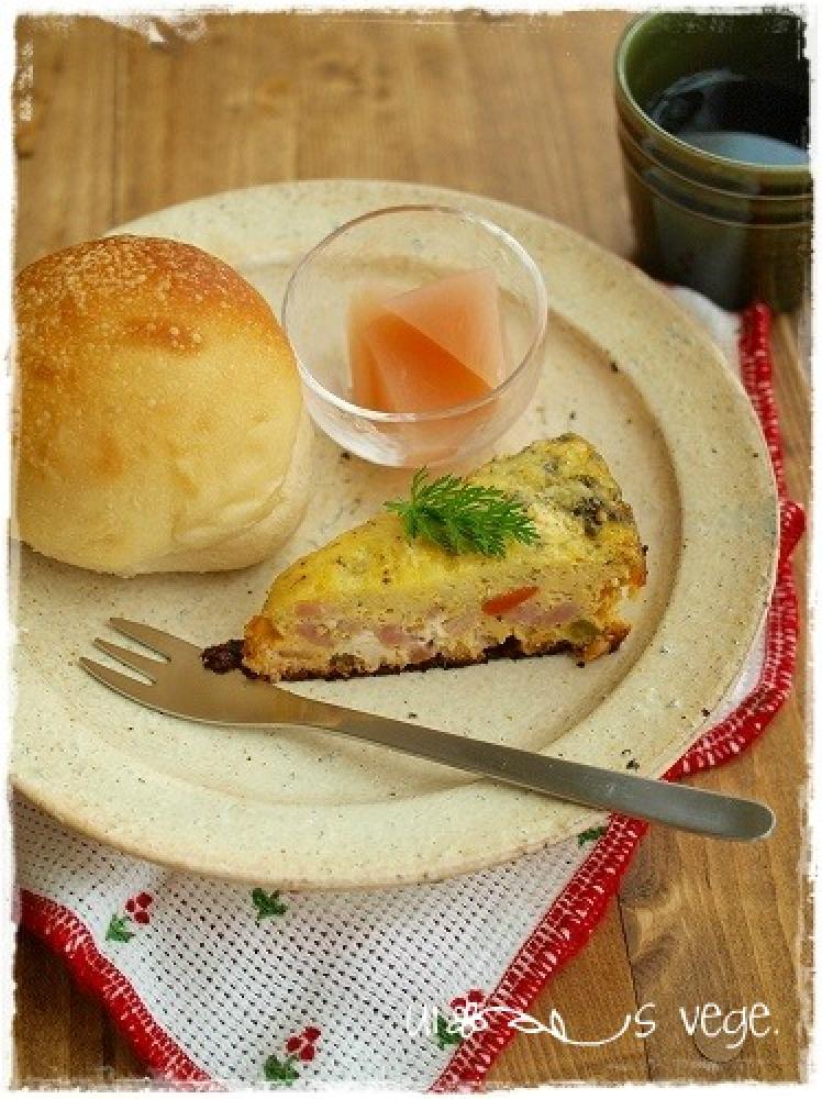 ボウルに卵、塩・胡椒・バジルペーストを入れてよく溶き鍋に回し入れる。