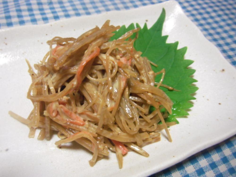2でできたきんぴらゴボウに、マヨネーズを加え、和える。