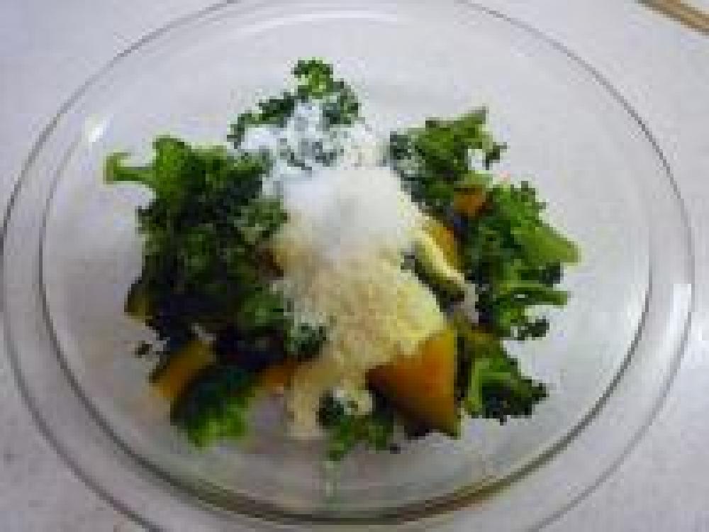 ![]() かぼちゃとブロッコリーが冷めたらボールに入れて、残りの調味料も加えてかぼちゃを軽くつぶすように混ぜ合わせたら完成です。