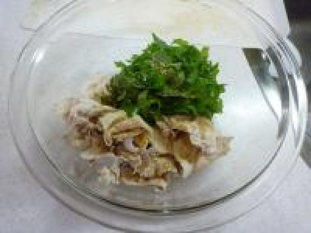 シソ、ダシ、ポン酢を加えて混ぜ合わせて完成です。 |