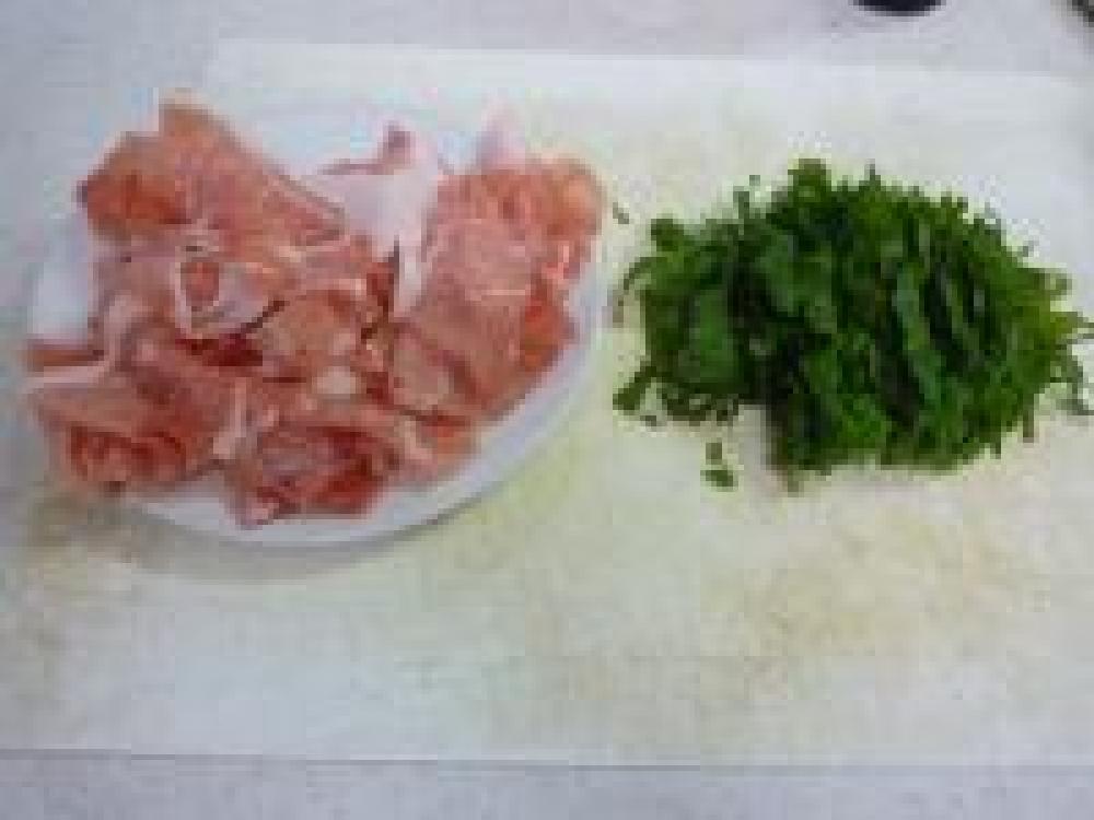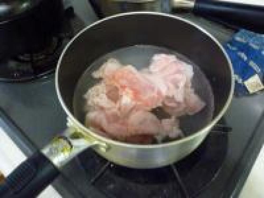 ![]() 豚肉はさっと茹でてザルにあげて冷まします。