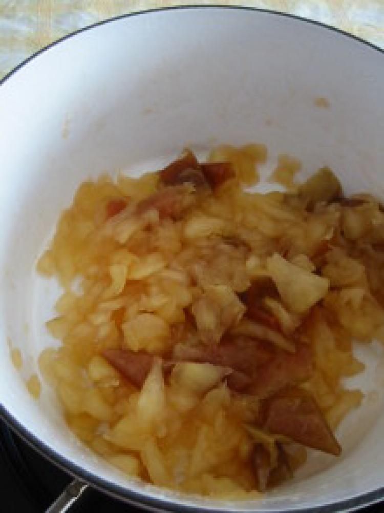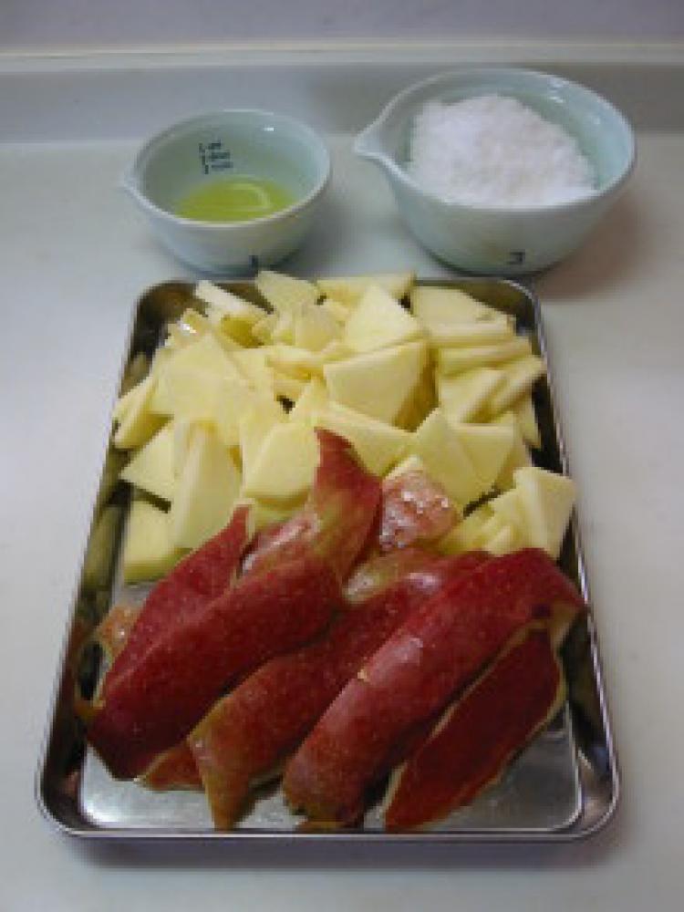 ![]() 下準備:りんごは皮を剥きいちょう切りにする。ゆずは果汁を搾る。ビンを煮沸消毒する。