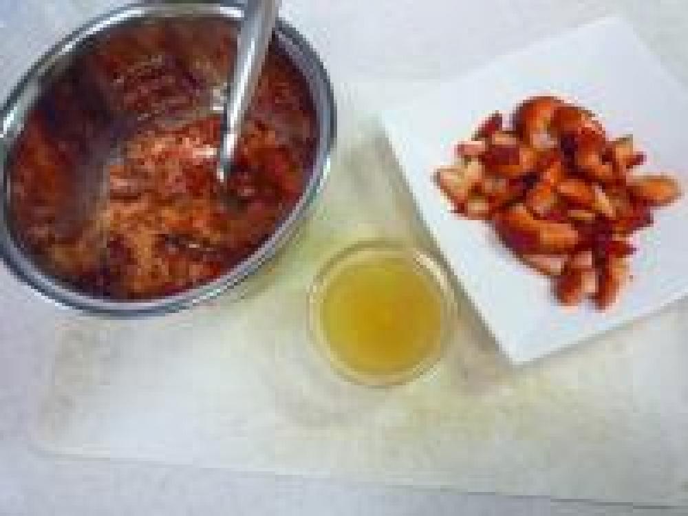 ![]() イチゴは洗ってヘタを切り落とします。200gはマッシャーなどでつぶします。100gは4~6等分に切ります。