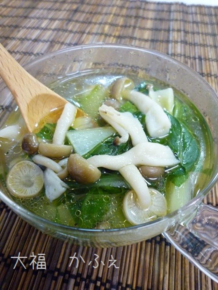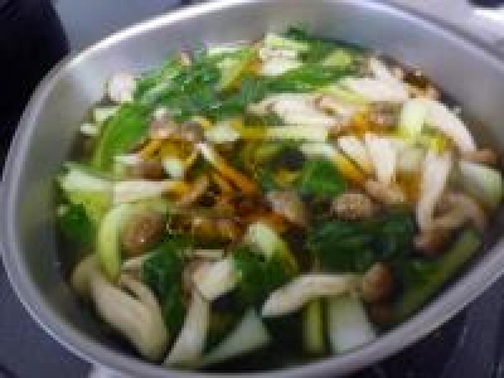 ![]() 鍋に水1リットルを入れて湧いてきたら、しめじとチンゲン菜をいれて煮ていきます。