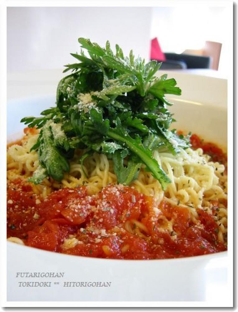 下準備:春菊の葉を一口大に切る。湯を沸かす。