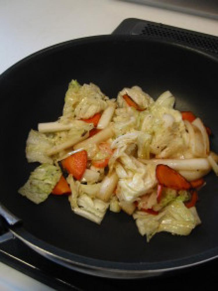 ![]() 油が回ったら塩こしょうをして